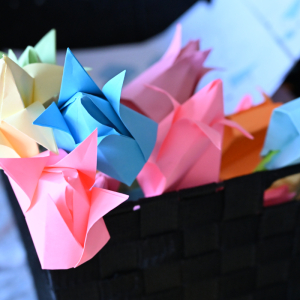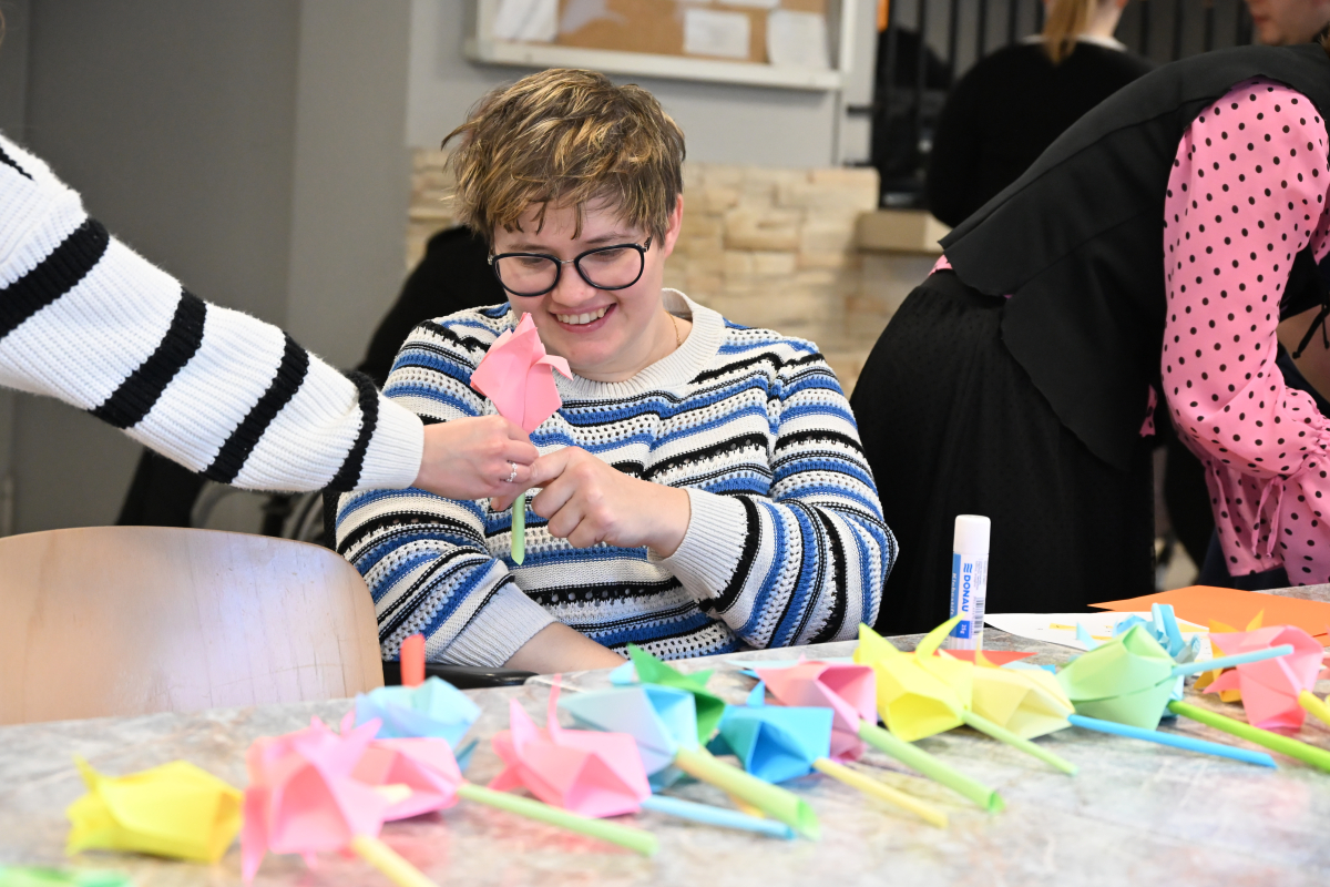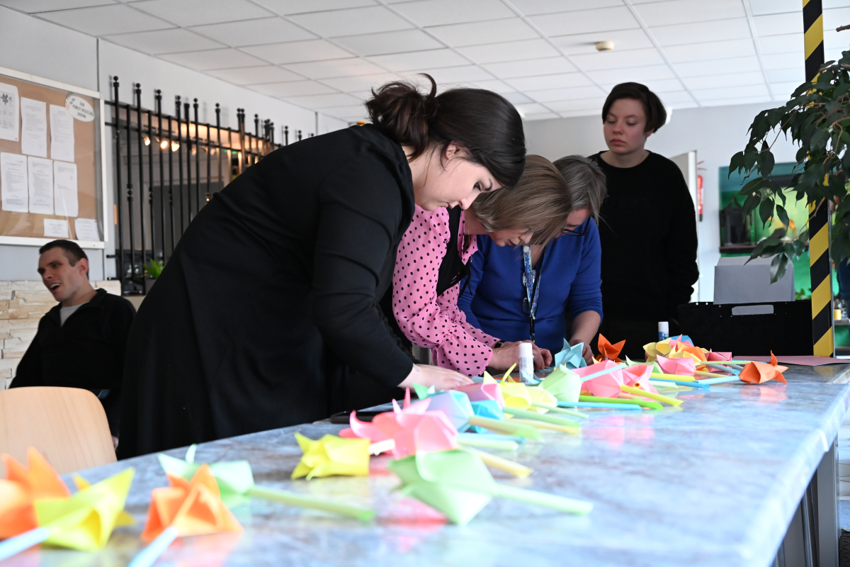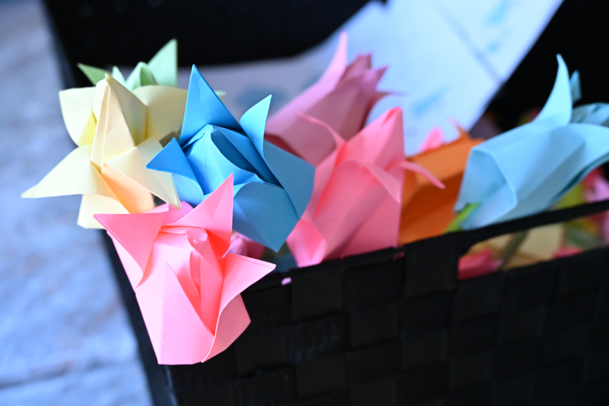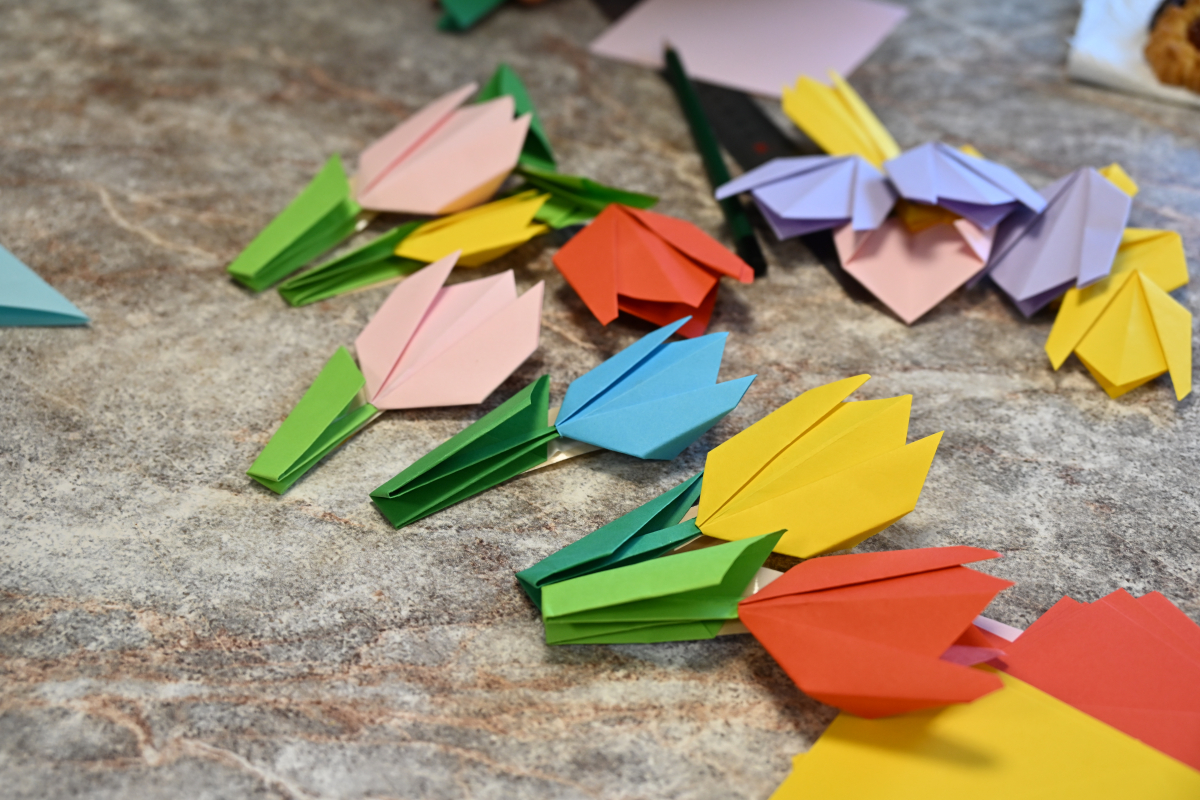 Każdy mógł też stworzyć upominek metodą origami. Zgodnie z tematem spotkania składaliśmy z papieru kolorowe kwiaty i krawaty. Kto wygrał te damsko-męskie zmagania? Oczywiście ex aequo!