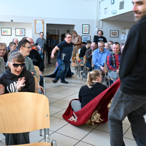 Wspólnymi siłami my, czyli DPS w Sadowej wraz ze Środowiskowy Dom Samopomocy w Sadowej oraz WTZ Sadowa, zorganizowaliśmy imprezowe spotkanie integracyjne Dzień Kobiet i Mężczyzn na cześć oczywiście. Uważamy się za przodowników promowania równości płci, dlatego rywalizacja damsko-męska tego dnia była bardzo zawzięta.