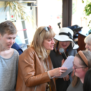 Na koniec drużyna pań i drużyna panów prowadziła bitwę na głosy. Karaoke z podziałem na role, aż szyby drżały!