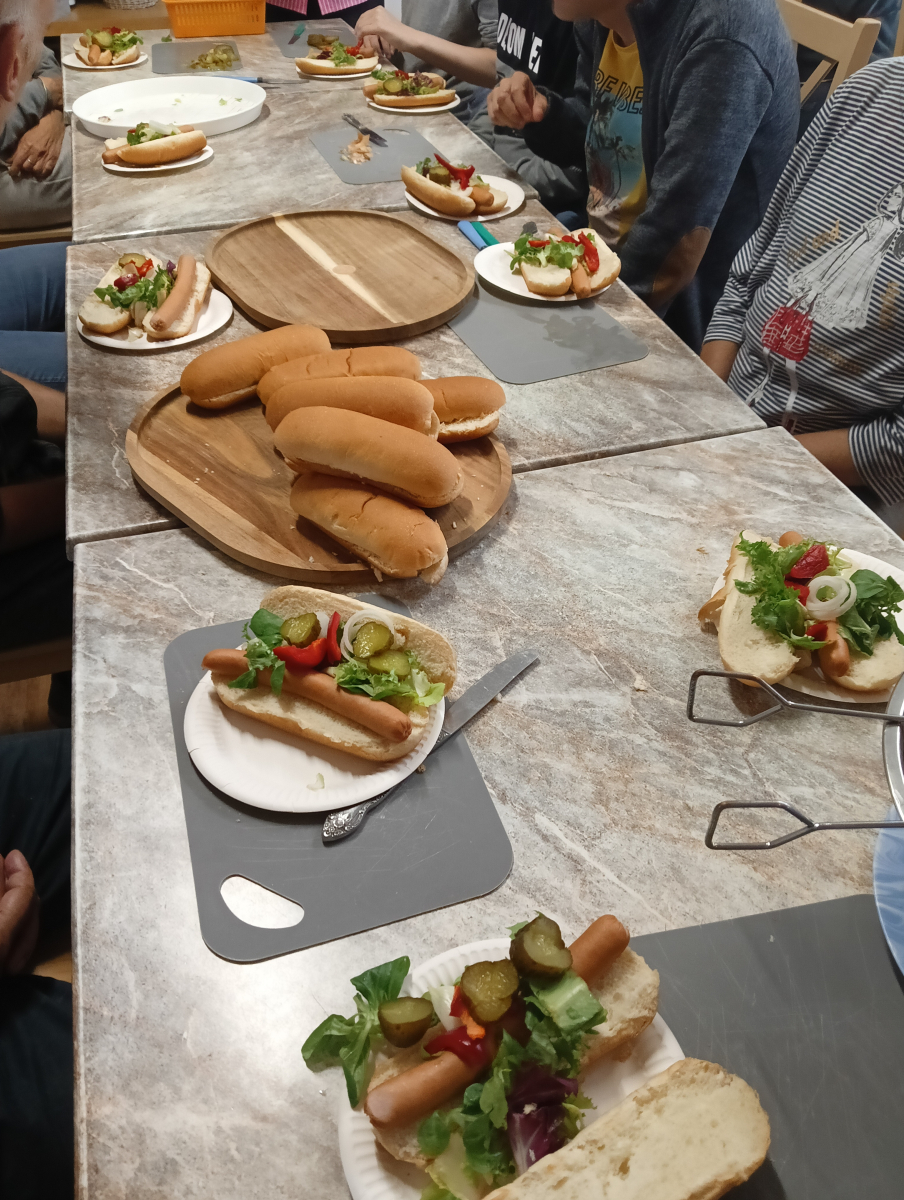 Kto by pomyślał, że zwykła parówka w bułce może wywołać tyle radości! Nasze ostatnie zajęcia kulinarne pod hasłem "Robimy hot dogi!" okazały się strzałem w dziesiątkę. Aromatyczne bułki, chrupiące ogórki, sosy, cebulka – każdy tworzył swoją własną kompozycję smaków, a efekt końcowy był... palce lizać!