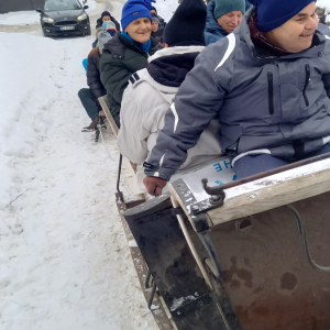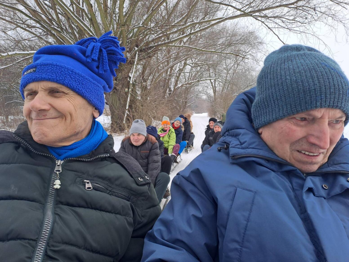 Dzięki uprzejmości cudownych ludzi 13.01.2026 odbył się kulig. Jak zawsze mogliśmy liczyć na pana Krzysztofa Skarbka, który od prawie 20 lat jest z nami zaprzyjaźniony. I tym razem wystarczyło pytanie a cuda się zadziały. ...Śnieg, sanie, sanki i koń "mechaniczny" w zaprzęgu a do tego przepiękna okolica Kępy Kiełpińskiej... Była przejażdżka polami i ośnieżoną drogą, a do tego ognisko, gorąca herbata i prawdziwy indor, co z pióropuszem lata. Gościnność stajni "Lider" od lat ta sama, choć czas jak zwykle goni, my w towarzystwie mechanicznych i prawdziwych koni, zostaliśmy ugoszczeni przez Pana Krzysztofa. Gorące podziękowania również dla kierowniczek Środowiskowego Domu Samopomocy w Sadowej i Warsztatów Terapii Zajęciowej w Sadowej za pomoc w organizacji zimowej atrakcji dla mieszkańców naszego Domu.