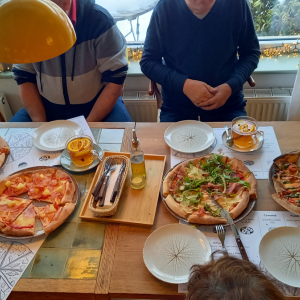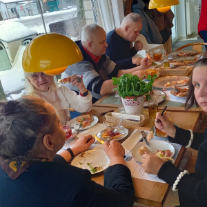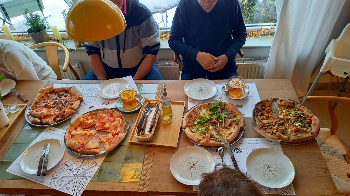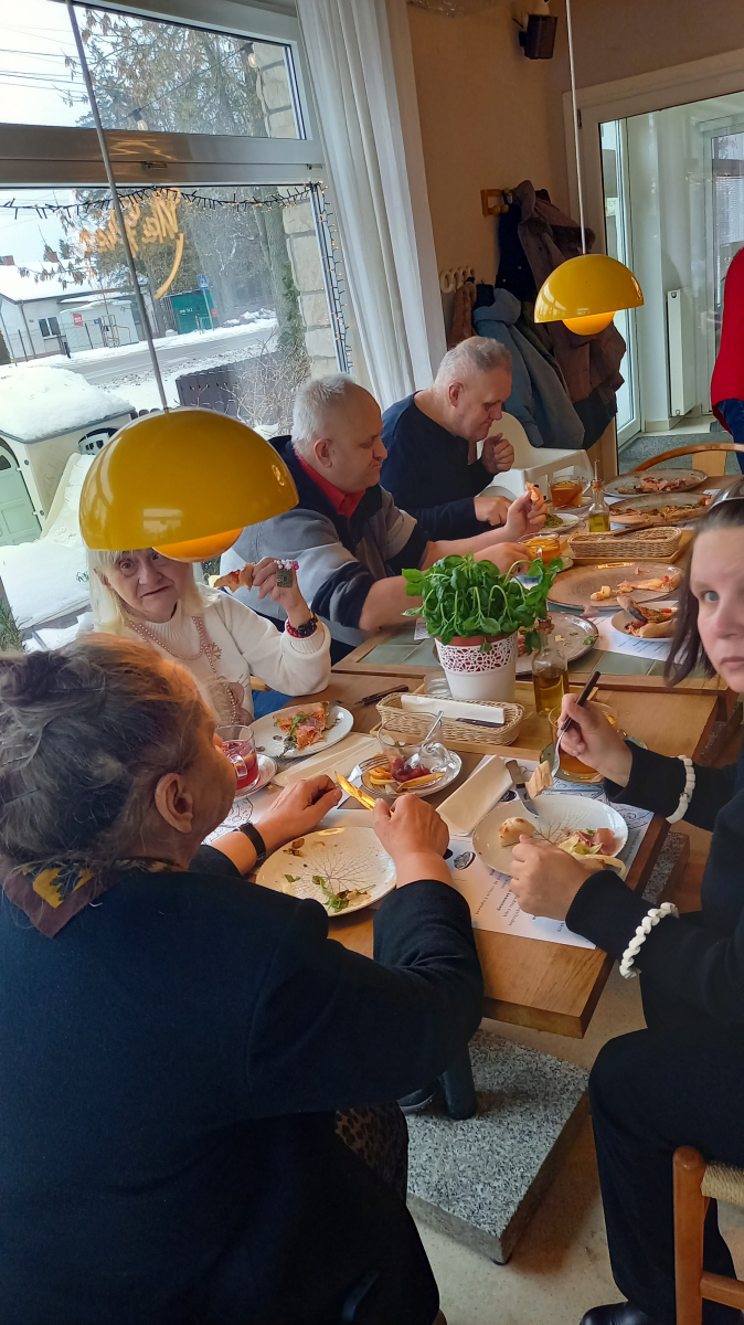 Tego dnia grupa mieszkańców miała "wychodne" do pizzerii. Pomysł na taką formę spędzenia czasu wolnego to propozycja grypy teatralnej, która w ciągu roku sumiennie angażowała się w zajęcia terapeutyczne. Ogrom pracy z ciałem, głosem i zachciankom reżysera to tylko wycinek życia naszych artystów. Efekt końcowy czyli występ przed widownią to kolejne przeżycia i pokonywanie własnych barier dlatego............ świętujemy chwile radości w naturalnej scenerii i "smakujemy życie" bez tremy na scenie.