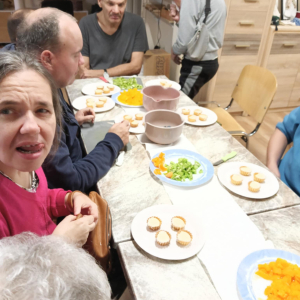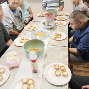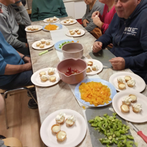 Mieszkańcy przygotowywali pyszne tartaletki z budyniem waniliowym i świeżymi owocami.